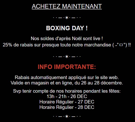 - Livraison gratuite au Canada à partir de 150$ d'achat avec le code promo FREESHIP