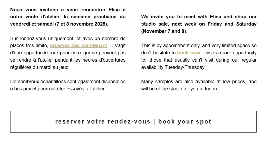 Elisa C-Rossow organise de temps en temps des ventes de saison :