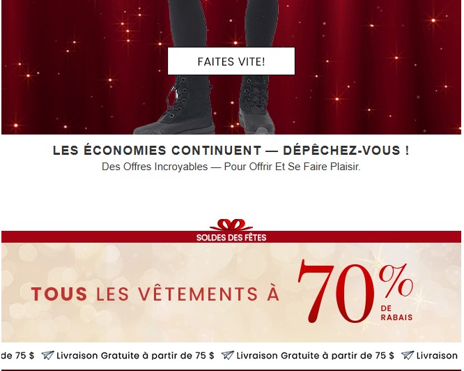 - Jusqu'à 80% de rabais sur les manteaux et vêtements d'hiver.