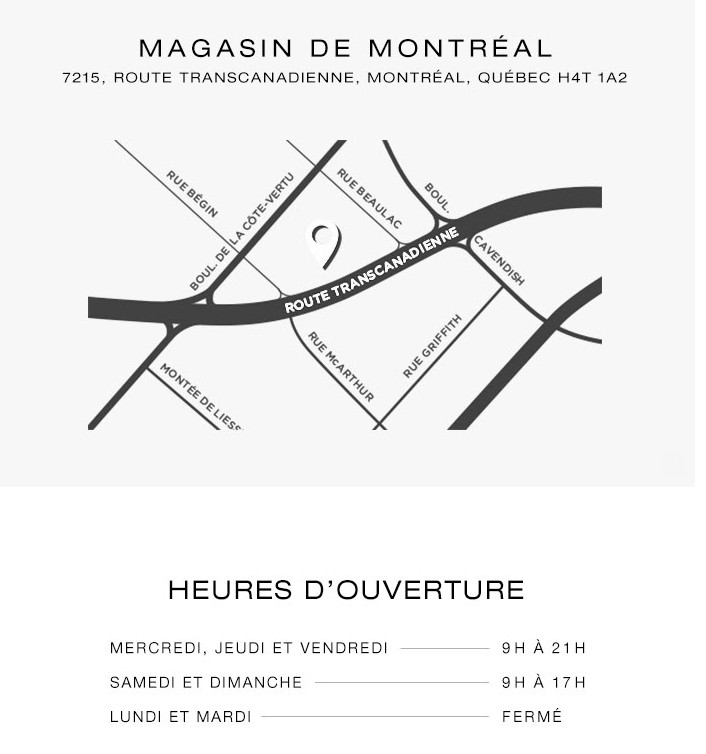 - Adresse : 7215 Rte Transcanadienne, Saint-Laurent (QC), H4T 1A2.