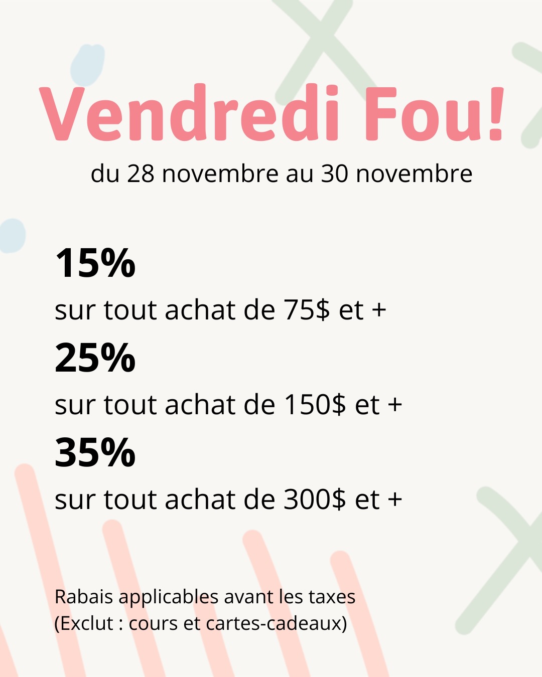 BON PLAN : Vendredi FOU du 28 au 30 Novembre 2025 avec jusqu'à 35% de rabais de 10h à 17h.