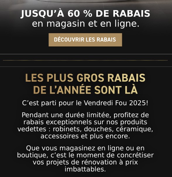 Magasinez toute l'année la section en ligne "Dernière Chance" de Plomberie Mascouche :