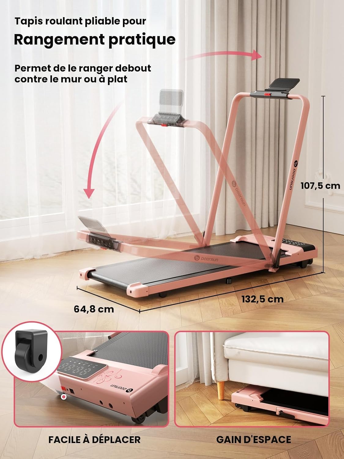 👉 DeerRunTapis de marche pliable sous bureau avec contrôle par application - 249,99$