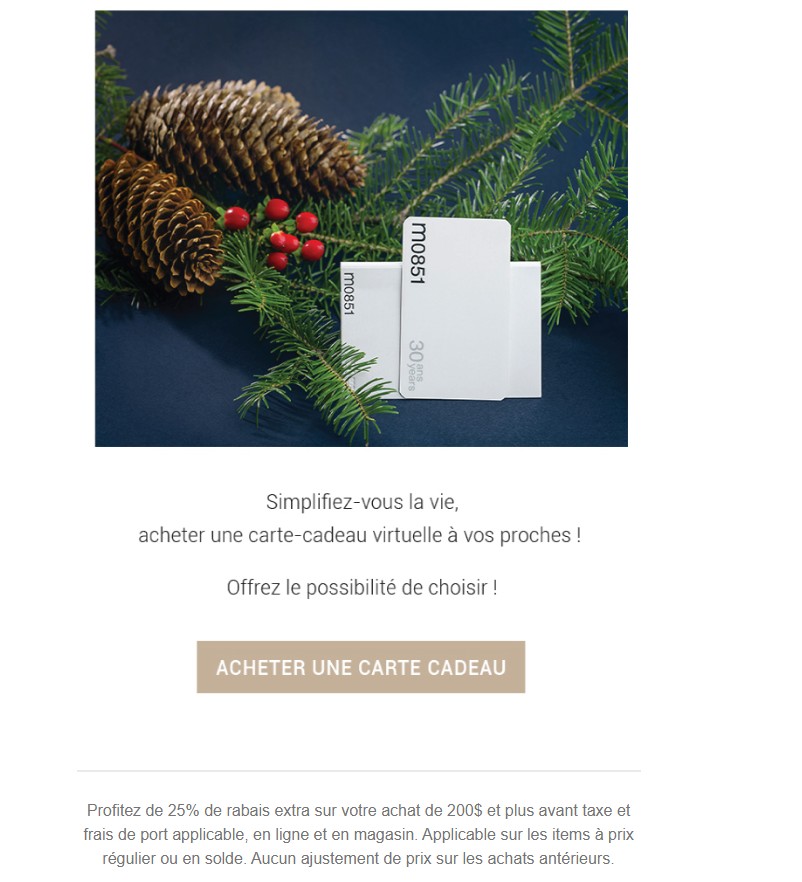 Les boutiques et le site web m0851 proposent aussi des ventes de saison avec des aubaines uniques pendant les fêtes de fin d'années et en été sans oublier la semaine du Vendredi FOU.