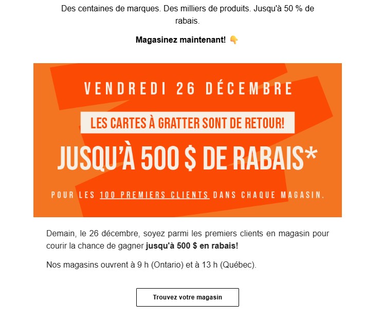 - Liquidation jusqu'à 70% de rabais sur des milliers d'articles.