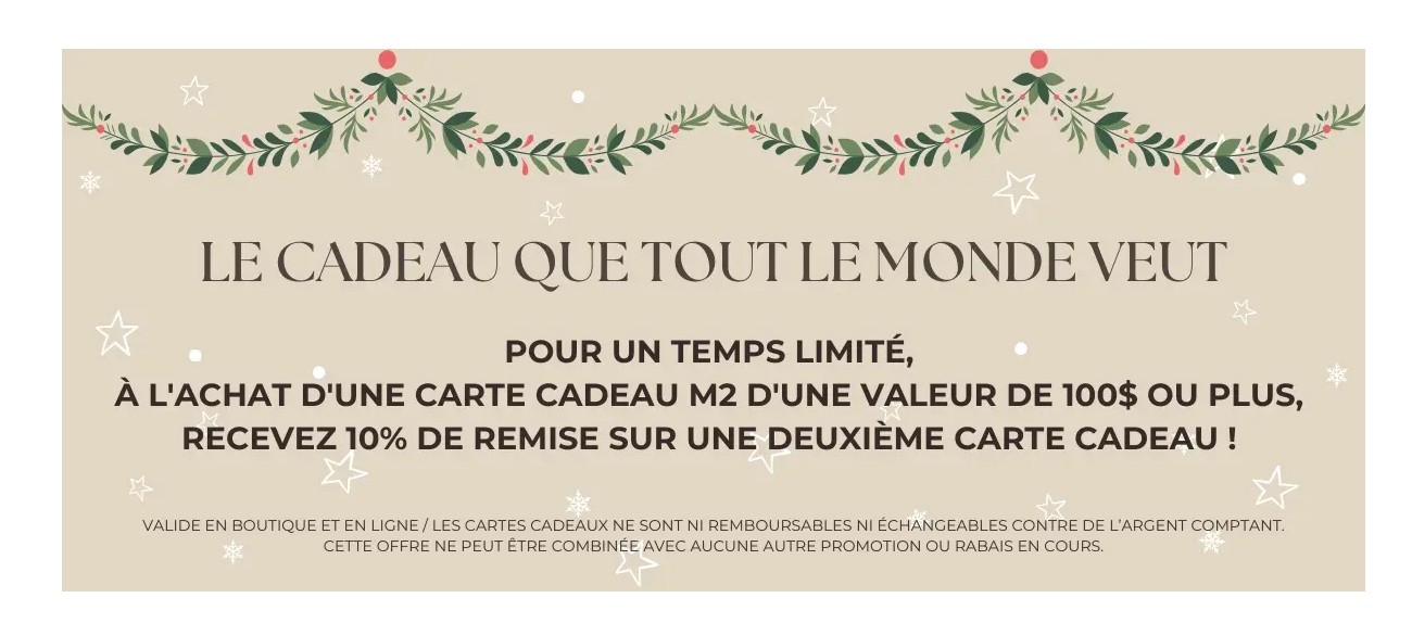 Découvrez les avantages d'être membre VIP. Le programme CLUB SELECT M2 BOUTIQUES offre aux membres des avantages exclusifs :