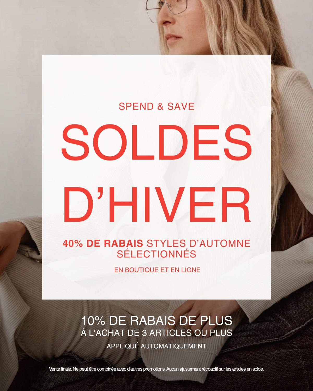 - En attendant les superbes collections Printemps-Été, magasinez la grande vente de Liquidation d'Inventaire: